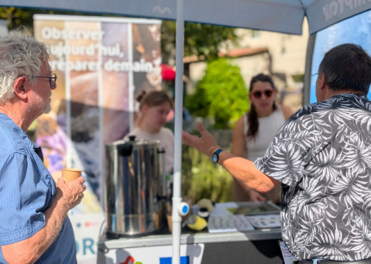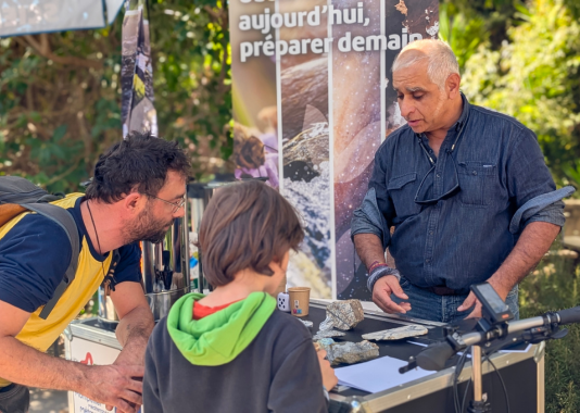 Sous le parasol OREME, les échanges ont fusé : mirages gravitationnels, submersibles des grands fonds, mésanges en ville, forêts face au changement climatique, oiseaux polaires d’Antarctique, métaux de la Terre, origine de notre eau ou exploration du sous-sol sans creuser.